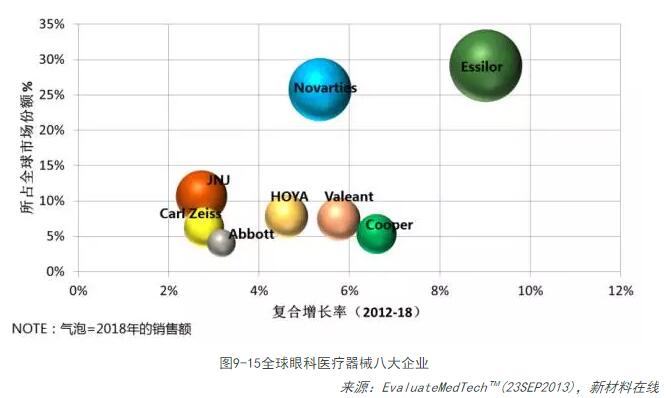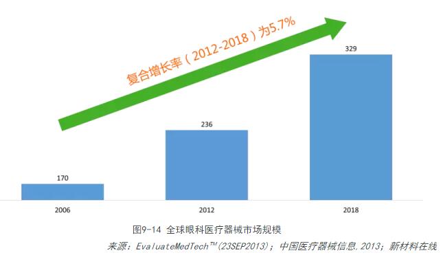 據統計,2006年全球眼科醫療器械市場(chǎng)已達170億美元,2012年為236億美元,預計2018年將達329億美元,年復合增長(cháng)率為5.7%。目前全球眼科醫療器械市場(chǎng)基本上被Abbott、essilor、Novarties、JNJVision、CooperVision等公司占領(lǐng)。